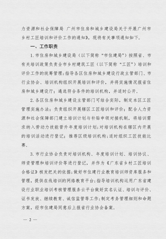 广州市住房和城乡建设局关于推进乡村建筑工匠培训和评价工作的通知穗建宣〔2020〕112号